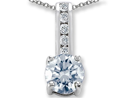 14k White Gold Plated Silver Genuine Aquamarine and Genuine White Topaz Pendant Dimensions: Width: 0.25 Length: 0.751.20 Carats 7mm round Color: Faint Blue Clarity: Clean, 5 Stones 0.15 Carats White Topaz Color: Colorless Clarity: Clean Free 18 inches 925 silver chain included with this order Finejewelers Style Number: 25734.