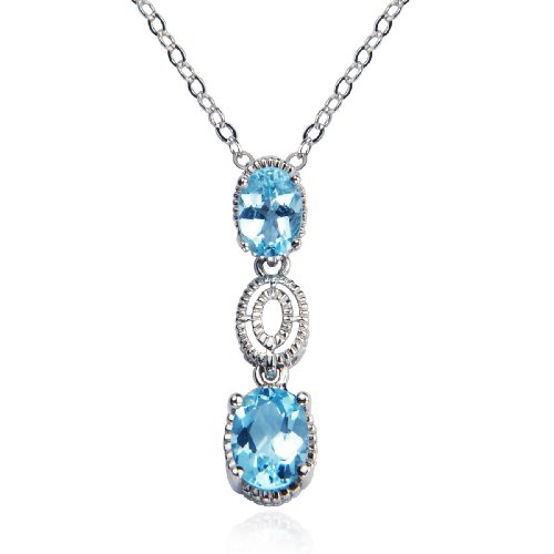 Indulge your fancy for sparkling blue with this beautiful two-stone drop pendant, fashioned in gleaming sterling silver. Two blue topaz oval gemstones are separated by a sterling silver oval shape, with light milgrain texturing enhancing the design. Completed with an 18-inch cable chain, this pendant makes a striking focal point.